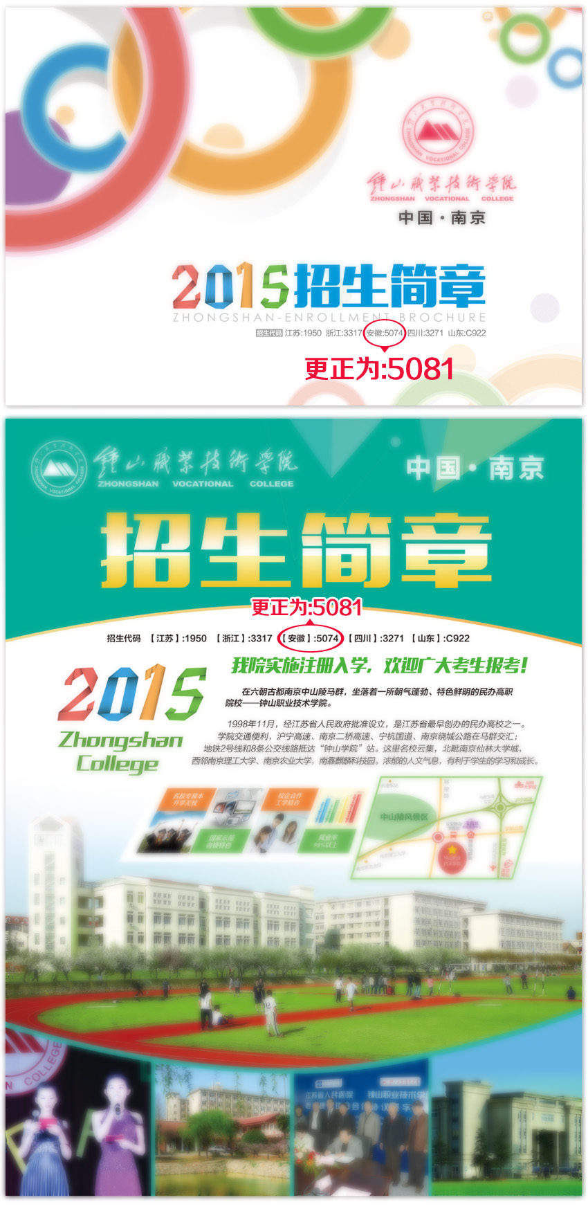 据最新《2015安徽普通高校招生报考指导》公布的我院安徽招生代码为 5081,我院之前宣传材料公布有误,特此更正!